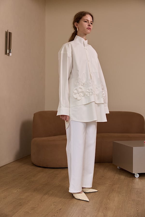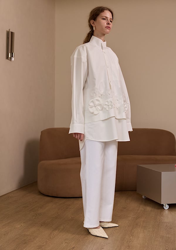 A very chic shirt made of 3D handmade flowers