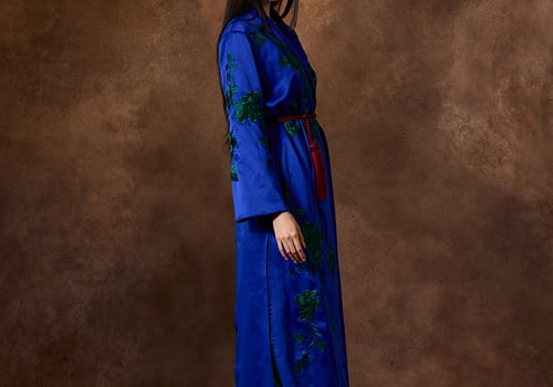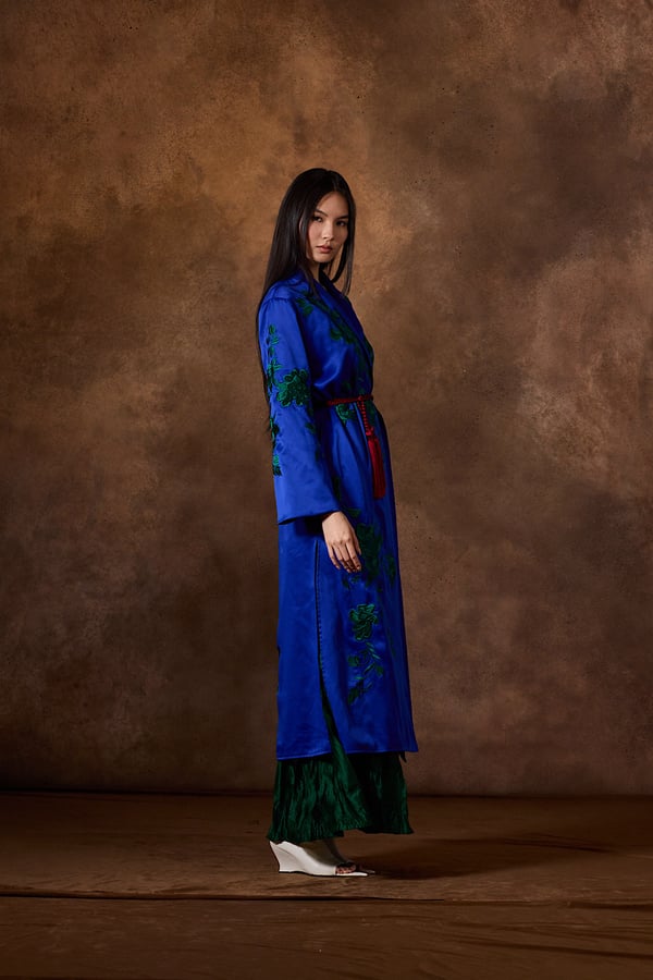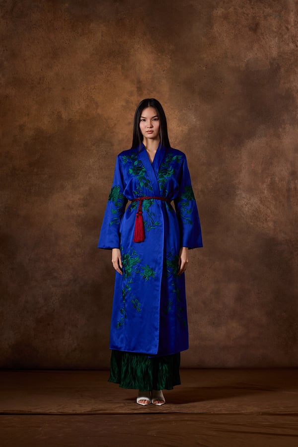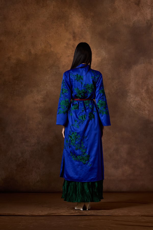 . Hand embroidered bisht with skirt.