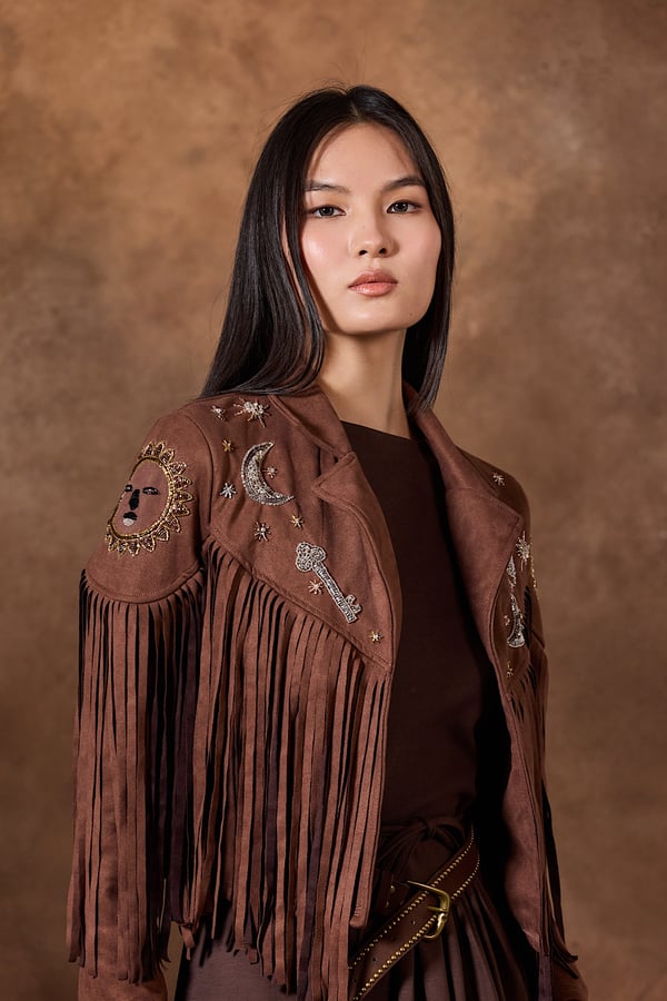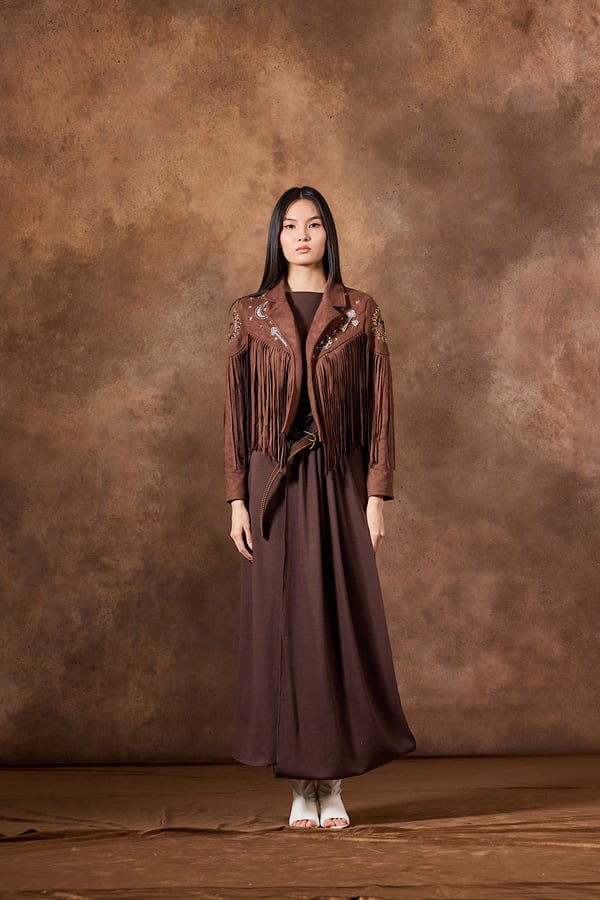 2 Pieces kaftan ( fringes cropped jacket with inner dress ) .