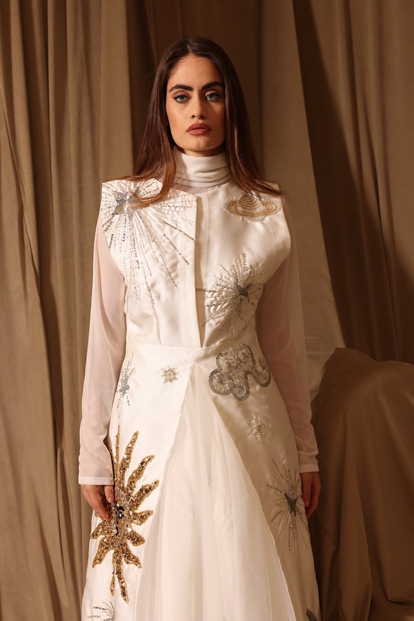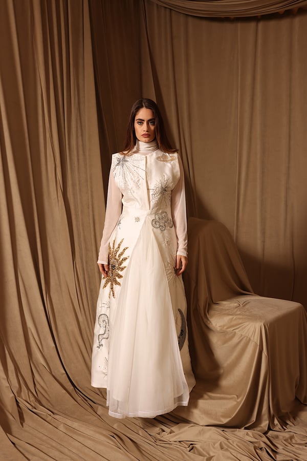Handmade kaftan with inner dress & see through sleeves