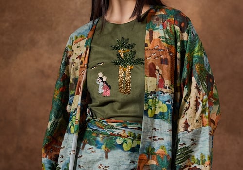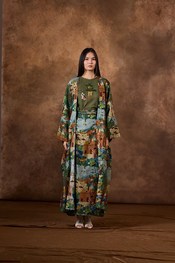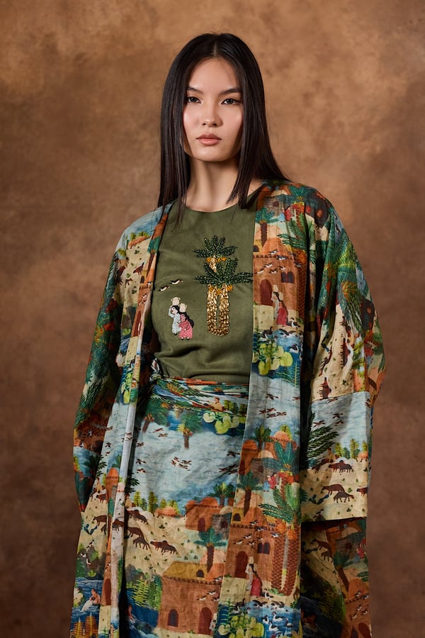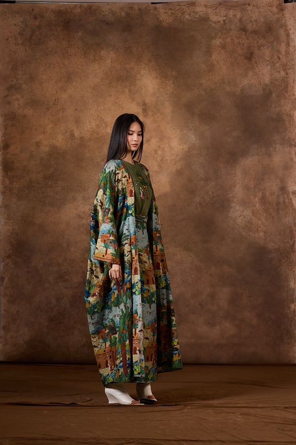 3 pieces customised kaftan ( top , skirt , bisht ) .