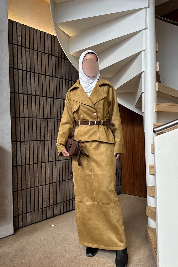 Suede 2 pieces set comes with a belt