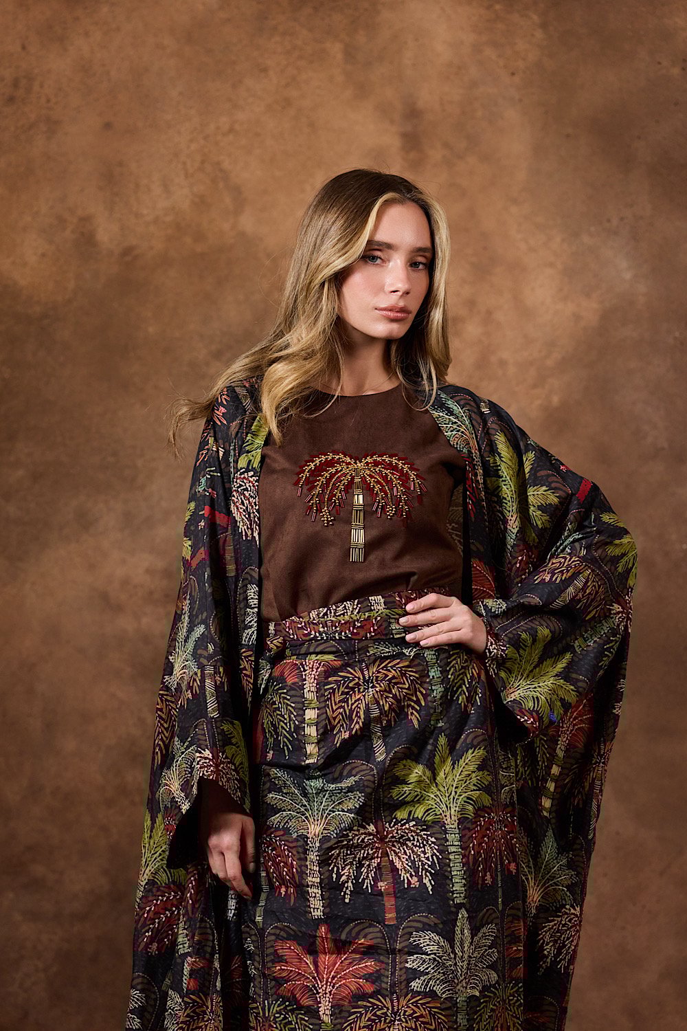 3 pieces kafan ( top - skirt - bisht ) .