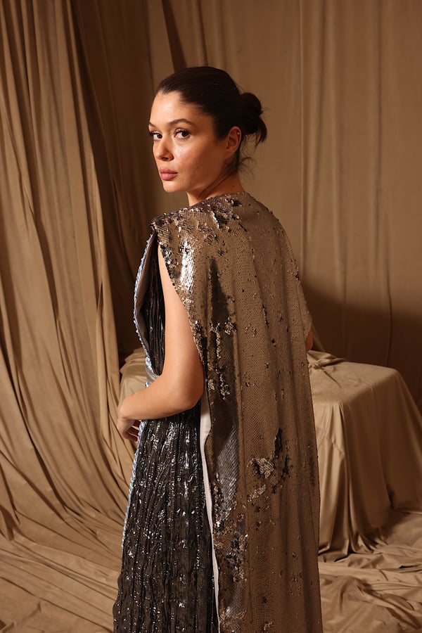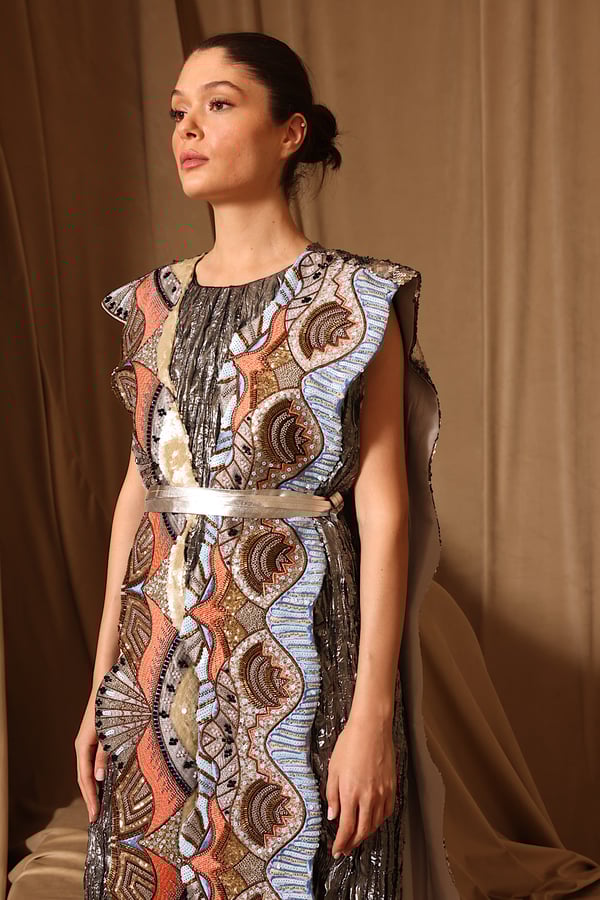 Embroidered vest with shimmering sequins on the back & inner dress